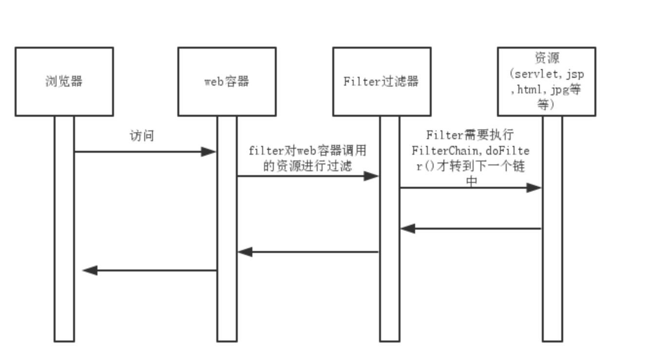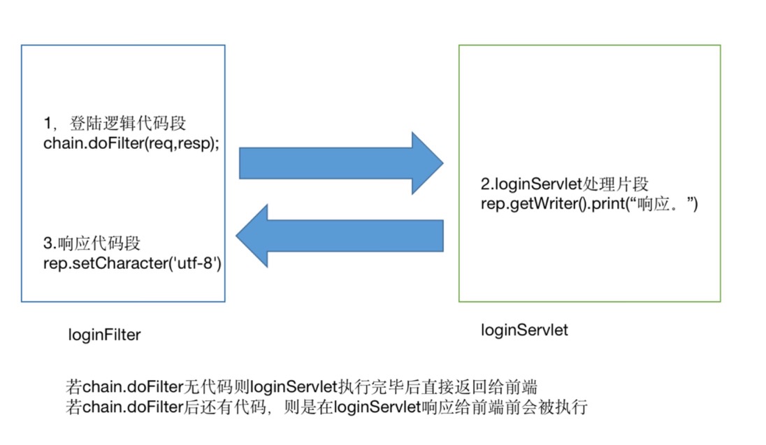 - 比如,可以在用户权限验证等等。判断用户是否有访问某些资源的权限,有权限放行,没权限不执行chain.doFilter方法。