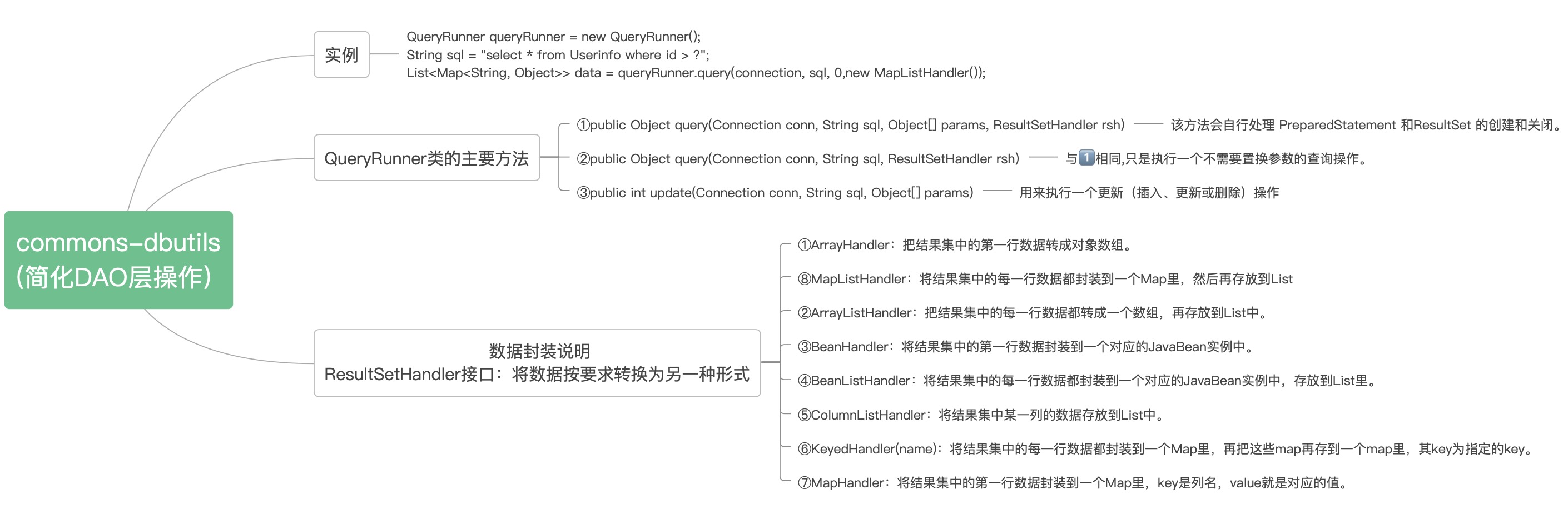 简化数据结果集的处理,[连接需要jdbc提供或者使用第三方连接池技术],commons-dbutils 是 Apache 组织提供的一个开源 JDBC工具类库,它是对JDBC的简单封装,学习成本极低,并且使用dbutils能极大简化jdbc编码的工作量,同时也不会影响程序的性能